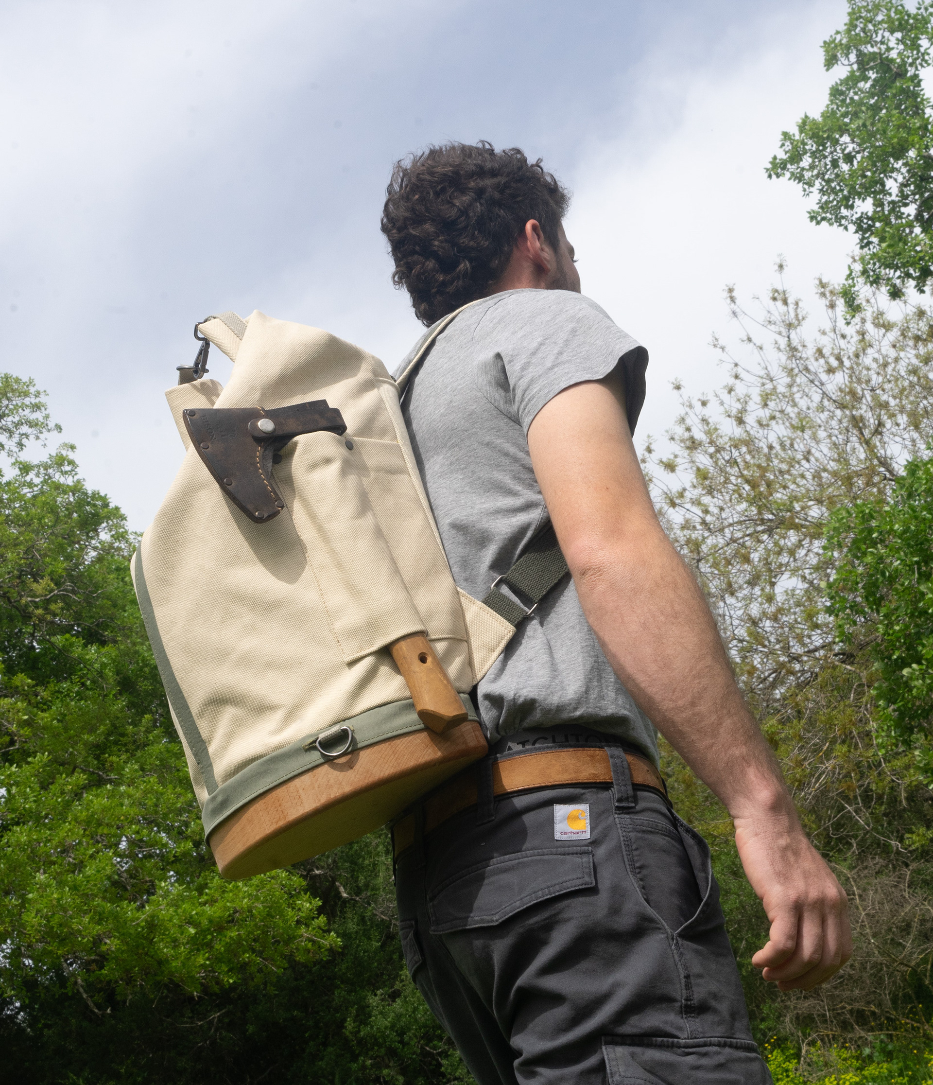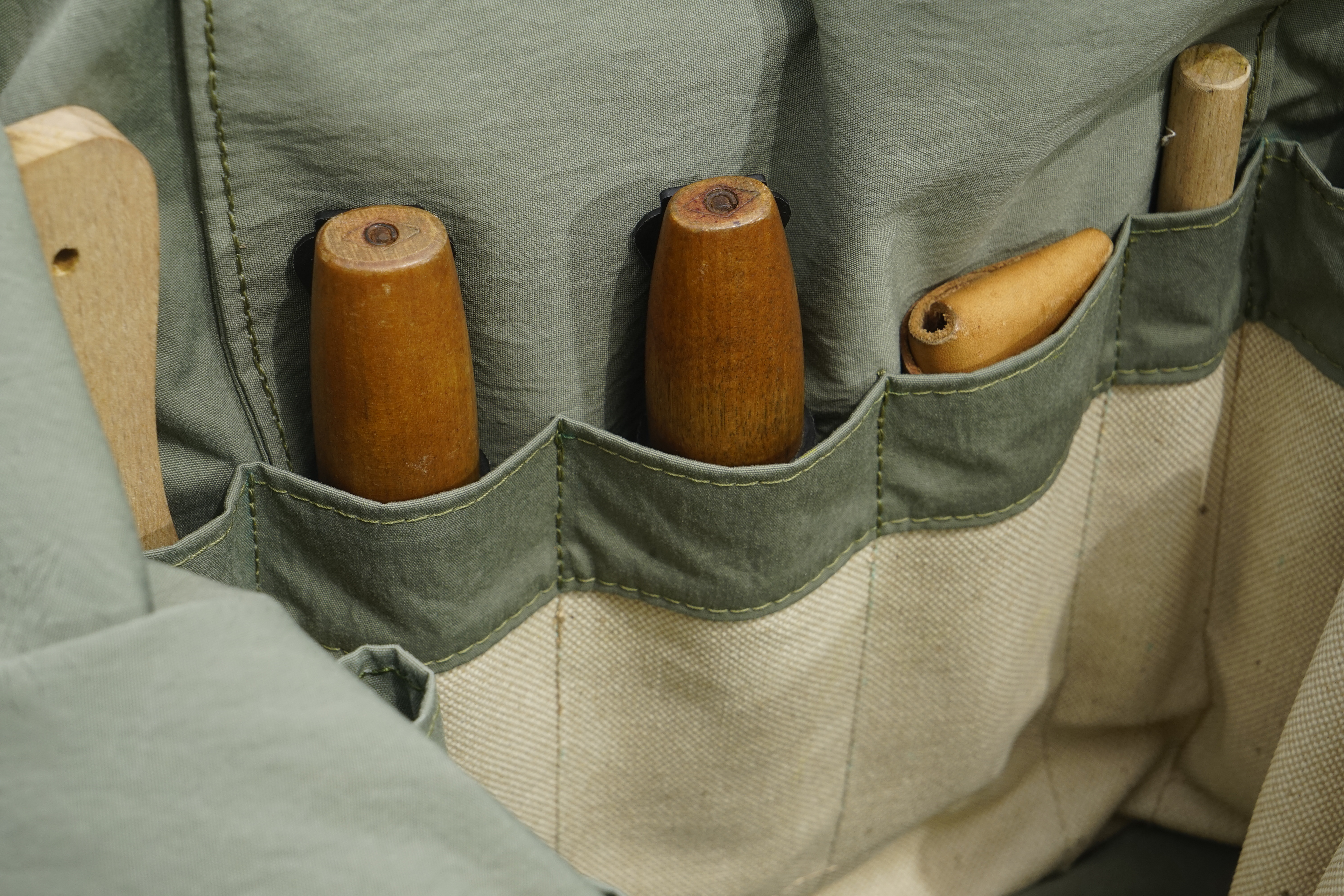 Made from wax-coated natural canvas and solid wood with an oil finish, ETZ offers a practical, durable, and comfortable solution for carvers working outdoors.