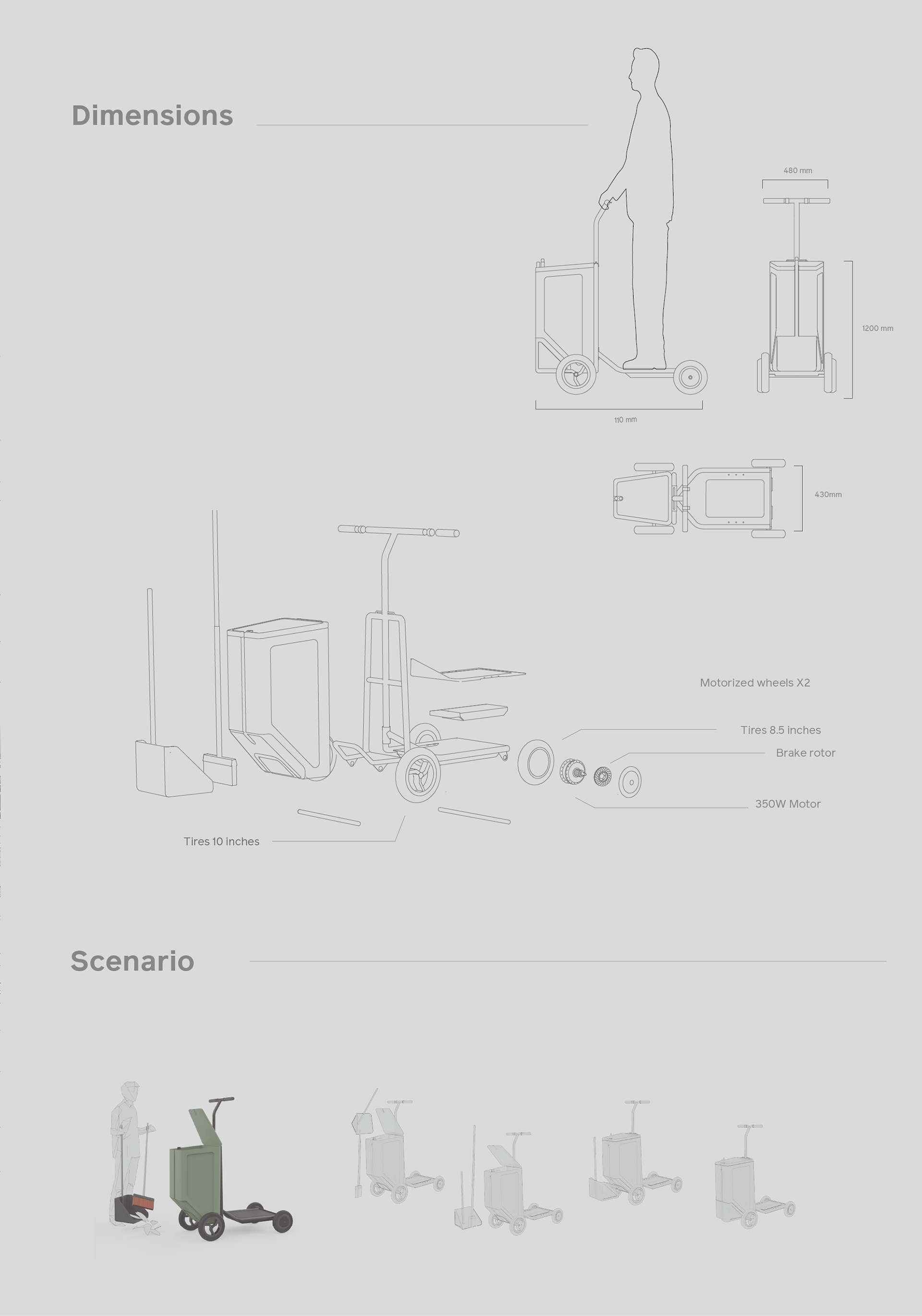 This project proposes an electric work cart designed to support street sweepers in navigating long urban routes while reducing physical strain and enhancing personal safety. As powered tools become increasingly common in city maintenance, the cart offers an efficient, mobile solution tailored to the workers’ needs.
