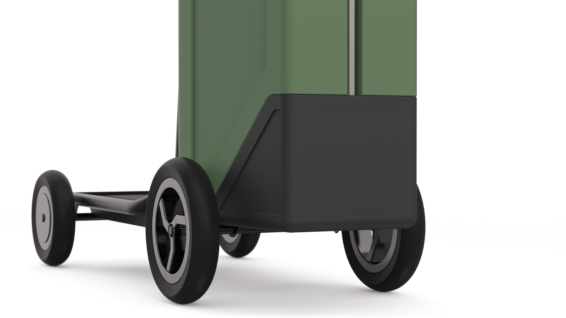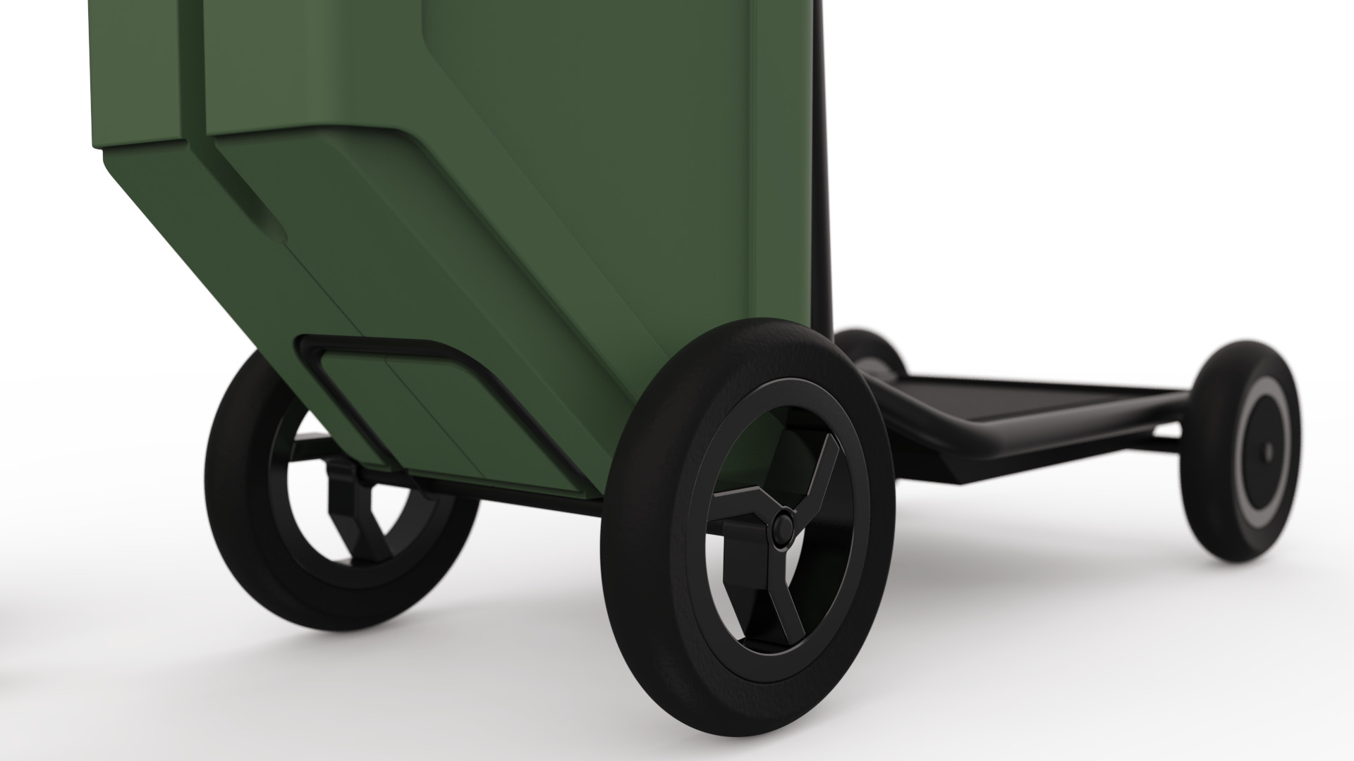 Featuring a minimalist and ergonomic design, the cart includes a front central compartment for intuitive tool attachment and organization. The result is a user-centered system that improves comfort, workflow, and the overall effectiveness of urban cleaning.